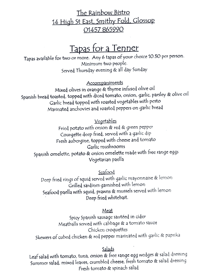 The Rainbow Bistro in Glossop is an intimate, cosy and stylish restaurant, serving exceptional food. Only the finest and freshest of local produce is used wherever possible. Our dishes are prepared with imagination, flair and much thought.