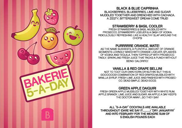 Housing an eclectic wine selection serving 24 wines by the glass and over 70 by the bottle, bakerie also has a fully stocked bar with great real ales, continental lagers a mix of contemporary cocktails so there really is something to suit all tastes.
