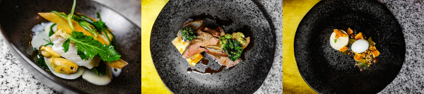 Current favourites include Roasted cod with smoked mussels, kohlrabi, seaweed sauce and sea herbs, Rump of beef with roast cauliflower, sage and feta dauphinoise, and Toffee parfait with yoghurt sorbet, honeycomb and granola.